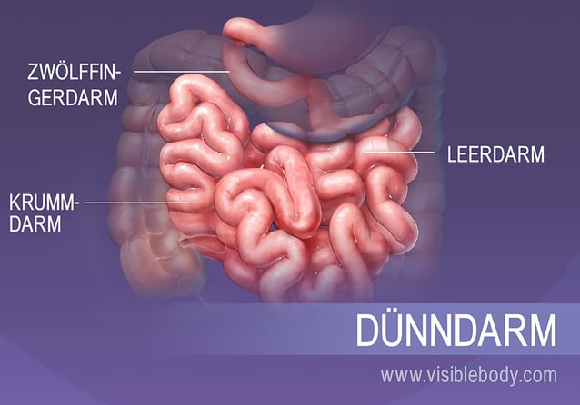 Der Dünndarm ist etwa 5 bis 7 Meter lang und besteht aus drei Hauptabschnitten: